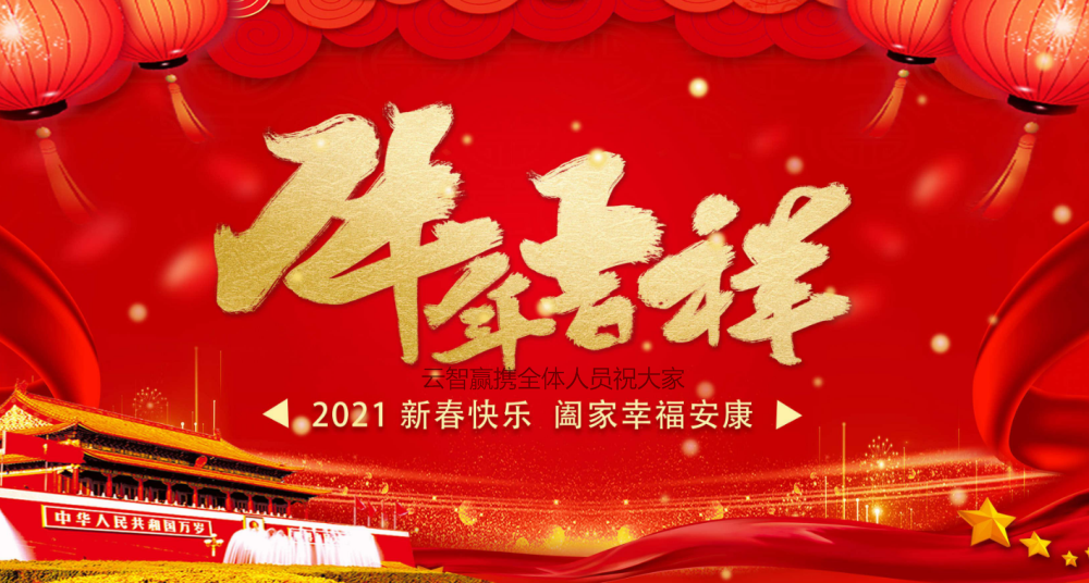 在2021新春佳節(jié)來(lái)臨之際云智贏攜全體員工;向長(zhǎng)期以來(lái)關(guān)心、支持云智贏發(fā)展的客戶(hù)們及所有的朋友們;致以新年的祝福和誠(chéng)摯的謝意!祝大家在2021年,牛年大吉、萬(wàn)事如意!