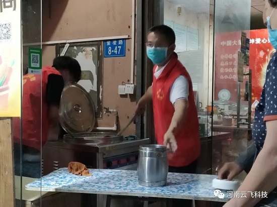 如今,雖然已是初秋,但這里的溫度卻仍是居高不下。16號凌晨四五點,這家“粥鋪”就已傳出熙熙攘攘的聲音。只見云飛科技的義工家人們此時,正在忙碌的準備今天的愛心早餐,爭取第一時間為“綠城”的環衛工人送上清晨的第一份“愛心”,以表達對工作在高溫酷暑一線人們的感謝之情。
