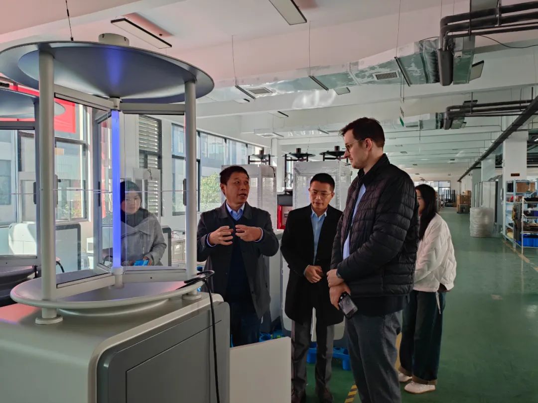 隨后,Evan Esch在云飛科技智能裝備生產基地進行了實地參觀,近距離觀摩了云飛科技的各項病蟲害監測預警產品。