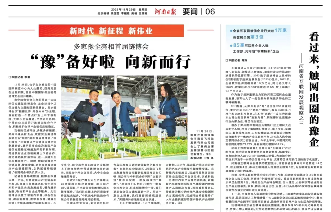 首屆鏈博會設置了智能汽車鏈、綠色農業鏈、清潔能源鏈、數字科技鏈、健康生活鏈等5大產業鏈和供應鏈服務展區,來自世界500強和全球供應鏈體系的龍頭企業齊聚亮相參展。云飛科技作為國內知名的農業信息化企業,也受邀參加此次盛會。同時,云飛科技也是本次鏈博會綠色農業鏈中唯一一家智慧植保企業,展現了云飛科技在智慧植保領域的領先地位和優勢。