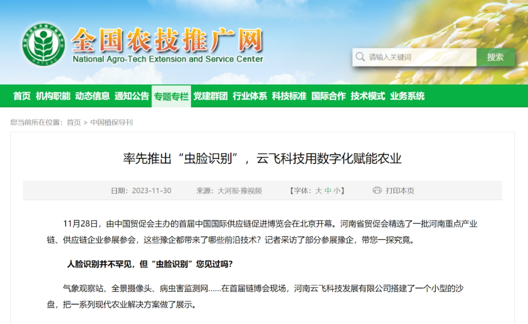 云飛科技攜AI蟲害識別、農業數字孿生等前沿技術亮相鏈博會,并展示了病蟲害監測預警的一系列產品和高標準農田數字化解決方案。展會現場,眾多參觀者紛紛駐足于云飛科技展臺,同時也吸引了眾多國外參觀者的目光和關注。