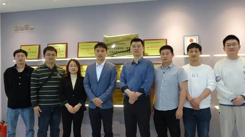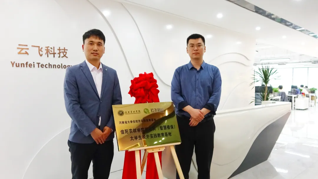 近日,信陽農(nóng)林學(xué)院農(nóng)學(xué)院副院長耿書寶副教授率植物保護教研室副主任喬利、種子科學(xué)與工程教研室副主任洪楓和逯麒森博士到訪河南云飛科技發(fā)展有限公司(以下簡稱“云飛科技”),并與云飛科技產(chǎn)研總監(jiān)盧春光等相關(guān)人員共同出席了新農(nóng)科(智慧植保)大學(xué)生校外實踐教育基地的揭牌儀式。