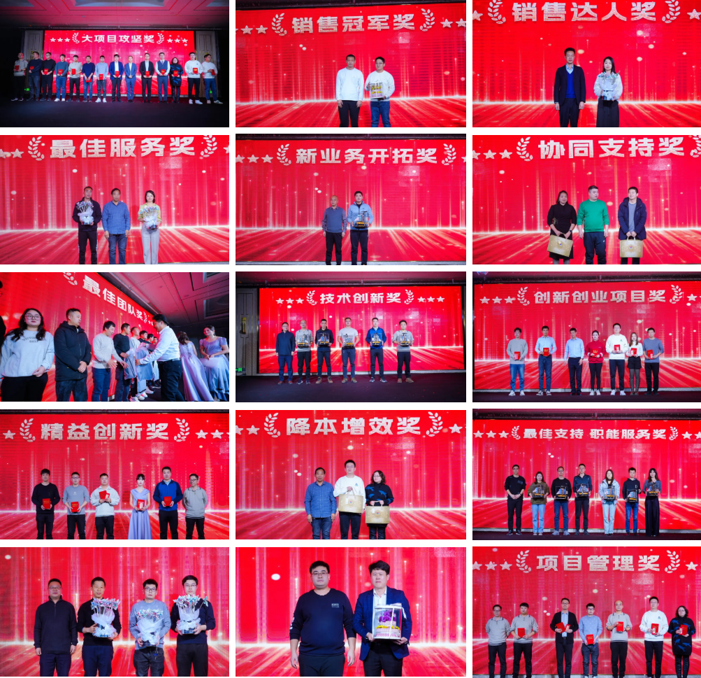 2024年,是機遇與挑戰交織的一年,云飛科技在各個領域取得的成就,離不開每一位云飛人的拼搏奮進。公司為2024這一年中涌現出的杰出個人與團隊,頒發了銷售冠軍獎、項目管理獎、技術創新獎、市場開拓獎、協同支持獎、優秀員工獎、降本增效獎等獎項。