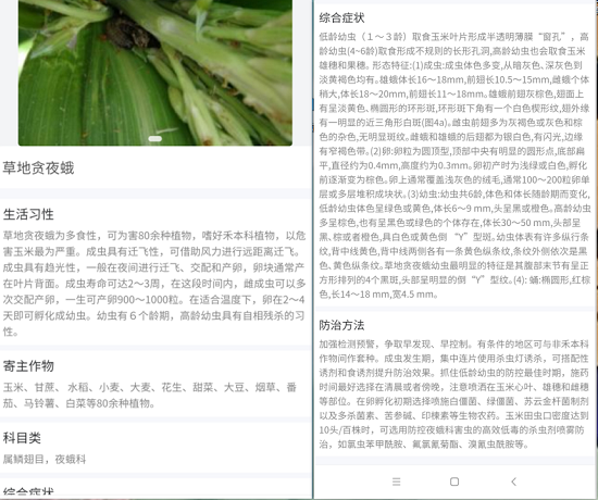 上面的圖片,是知蟲APP對于草地貪夜蛾害蟲的識別,過程很簡單,只需拍一張照片,就能識別,同時還能知道害蟲的習性特點防治方法等。不但能幫助認識害蟲,同時還給出防治的建議!